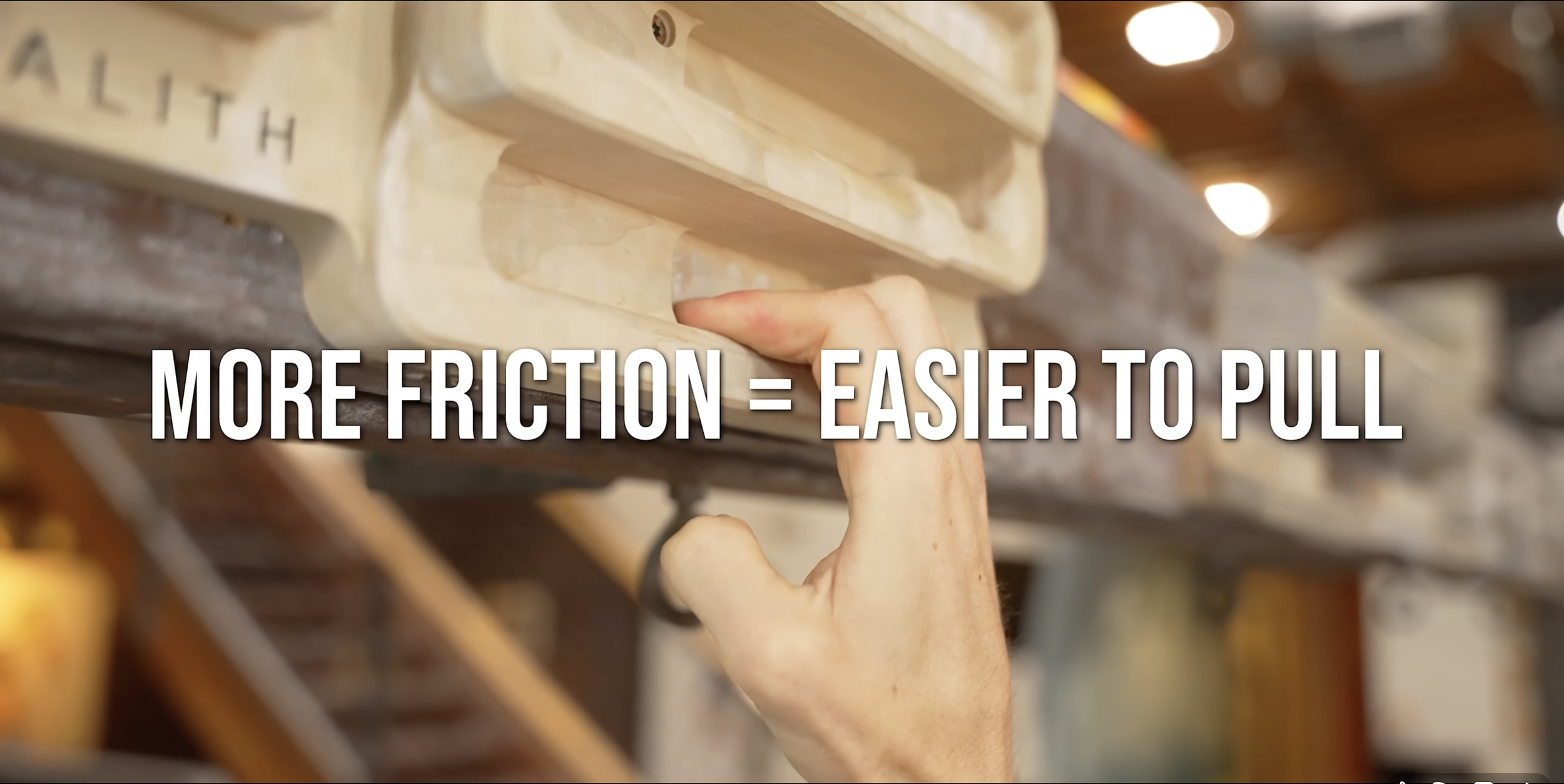 For this one, you really want an incut hold – something that lets your fingertip curl in comfortably without pressing into a sharp edge. (Our Comfy Crimp is designed for exactly this!) Start with less weight than you'd use for normal block pulls since this is a new exercise.
