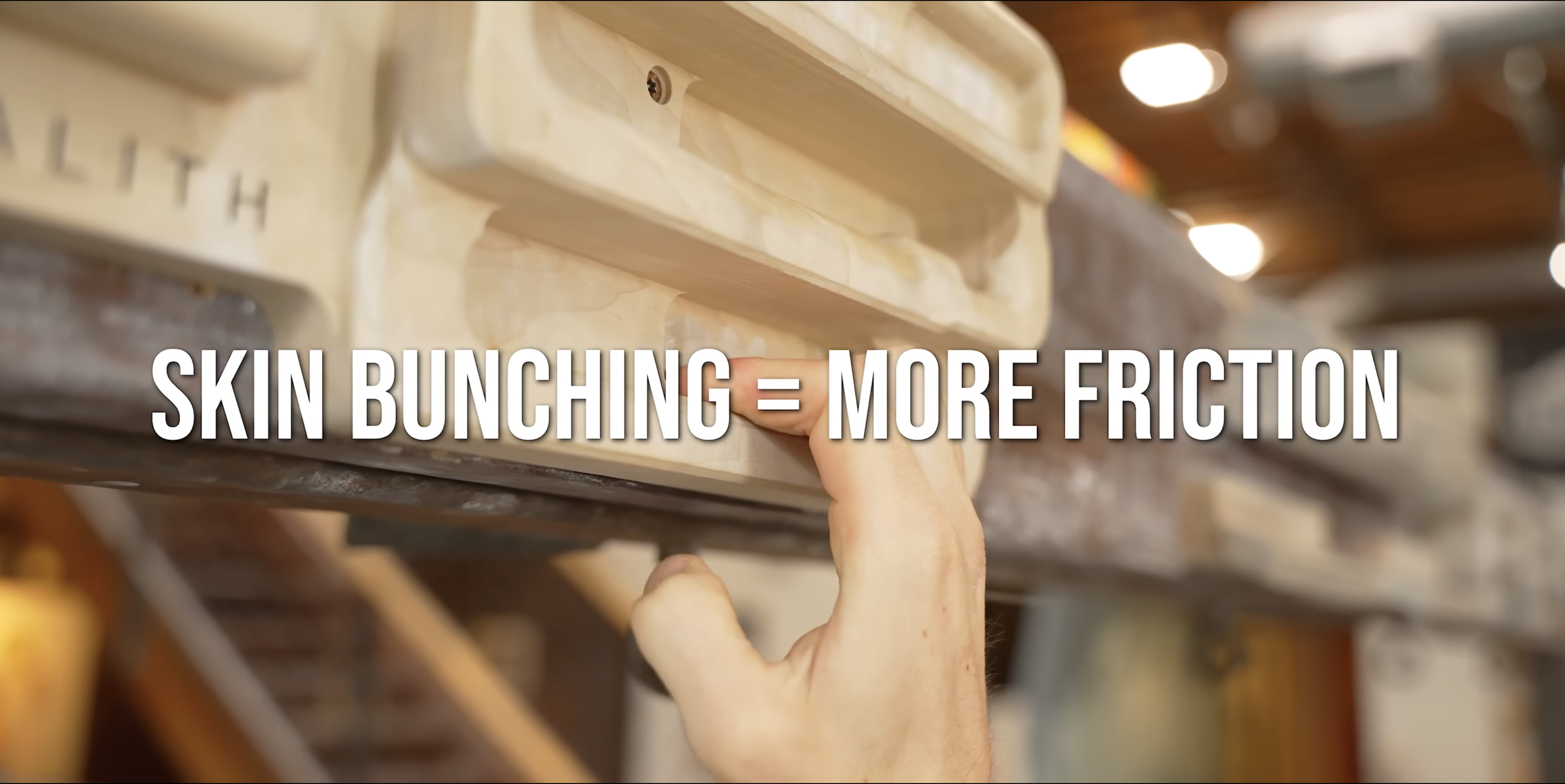Watch someone hang on an edge. A lot of the time, they'll reach slightly past the edge and then sag into it. The skin on their finger folds up against the lip of the hold, bunching together and creating a kind of fleshy hook that increases friction.