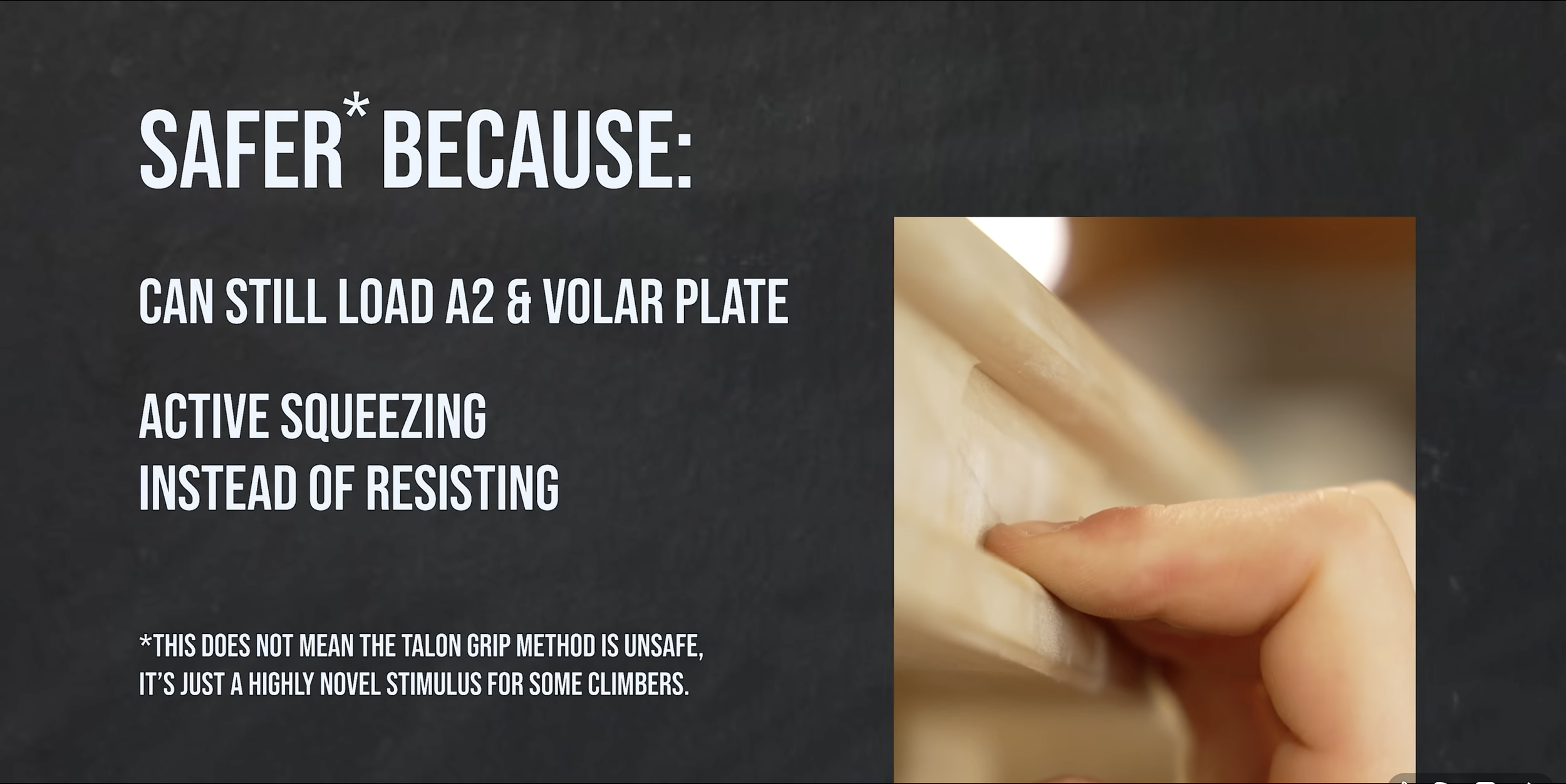 This approach has some solid benefits. You can still load your A2 and volar plate. You're not doubling down on the A4. And because all the force comes from actively squeezing rather than resisting, it tends to be a safer, more auto-regulated exercise – great for rehab, getting used to new edge sizes, and even monos.