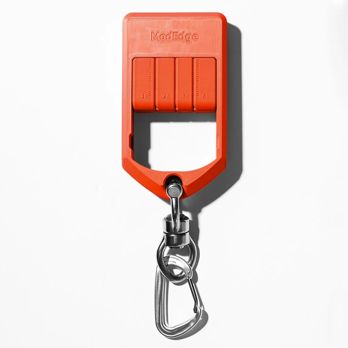 The pin for the swivel simply slots through the hole and into the arms (you may have to tilt the swivel slightly to get the arms over the ModEdge hole — if you try to put it straight on it will be much harder) and then the little retaining clip goes on to keep the pin in place.